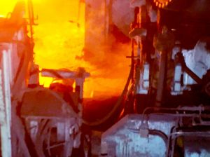 在熱軋軋制線上,鋼坯來回往復,粗軋、中軋、精軋,在這期間,鋼坯的溫度基本都在1000℃以上,即便到了冷床,經(jīng)過軋輥冷卻水的“降溫”,鋼坯的溫度仍然在600℃以上。大棒廠里,軋鋼線正高速運行。一旁,剛出爐的鋼材散發(fā)著亮紅色澤,從生產(chǎn)線上傳送到