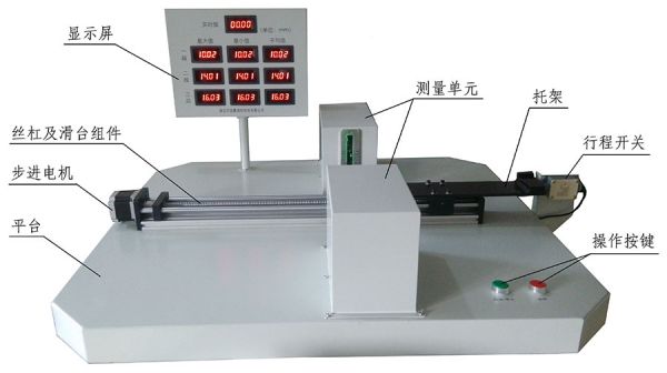 設(shè)備采用光電測(cè)頭的寬度和厚度測(cè)量原理進(jìn)行測(cè)量,測(cè)量時(shí)測(cè)量光束包覆膠條及其工裝。主要用于測(cè)量密封膠條老化前和老化并充分回彈后的膠條尺寸,通過(guò)老化前后尺寸的對(duì)比判斷膠條的質(zhì)量。