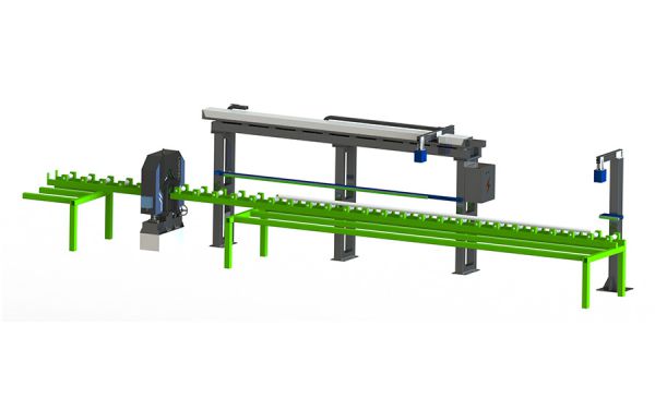 該項(xiàng)目主要檢測(cè)精磨銀亮鋼的長度和直徑兩個(gè)指標(biāo),直徑檢測(cè)采用我公司光電測(cè)徑儀產(chǎn)品,長度檢測(cè)部分采用機(jī)器視覺系統(tǒng)。長度檢測(cè)部分共設(shè)置2臺(tái)工業(yè)相機(jī),其中一臺(tái)固定位置安裝,測(cè)量鋼材定位端;另一臺(tái)安裝在直線導(dǎo)軌滑臺(tái)的滑塊上,可根據(jù)鋼材長度調(diào)整位置測(cè)量鋼材的自由端。直線導(dǎo)軌滑臺(tái)采用伺服電機(jī)驅(qū)動(dòng),滑臺(tái)移動(dòng)距離由測(cè)量軟件控制,移動(dòng)完成后的距離直接計(jì)入長度計(jì)算系統(tǒng),2臺(tái)相機(jī)測(cè)量的數(shù)據(jù)和滑臺(tái)行走數(shù)據(jù)相結(jié)合可計(jì)算出鋼材的長度。測(cè)長系統(tǒng)采用在鋼材側(cè)上方設(shè)置的條形光源補(bǔ)光,圓形鋼材反射至工業(yè)相機(jī)的光線為一條比較窄的亮線,非常適合高精度測(cè)量的補(bǔ)光要求。